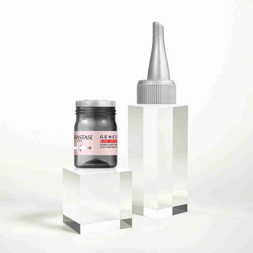 Az aminexil és gyömbér tartalmú Kérastase Genesis Ampoules Cure Fortifiantes Anti-Chute szérum extra segítséget nyújt fokozott hajhullás esetén. Hozzájárul a fejbőr élettani működésének javításához és óvja a káros külső hatásoktól.