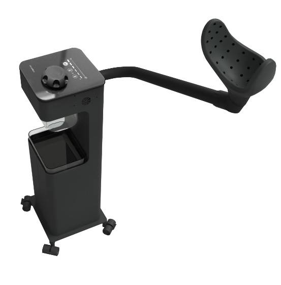 A gőzszóró maszk kondenzvízgyűjtő rendszerrel és háromtengelyes csuklóval van felszerelve, amely lehetővé teszi az ügyfél arcának pontos helyzetéhez való alkalmazkodást.